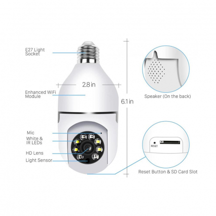 Wifi Smart Camera Ligh Bulb with E27 Socket 128GB Micro SD Card Full HD Memory Card Dome Surveillance Camera HD Night Vision Light Socket Camera